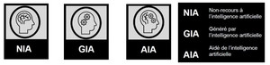 Par ailleurs, l'utilisation d'intelligence (ou pas) dans la production de supports est à préciser via les pictogrammes suivants :