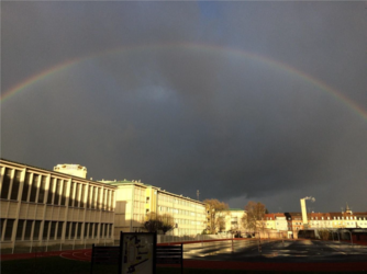 Encadrés par Marc Strubel et Nicole Adloff, ce sont 6 élèves du lycée Albert Schweitzer de Mulhouse qui ont étudié les phénomènes optiques dans les arcs-en-ciel dans le cadre de leur projet pour les 29e Olympiades de Physique intitulé "Over the rainbow" .