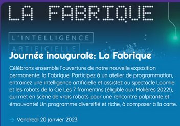 Pour explorer la toute nouvelle exposition permanente La Fabrique, réservez-vous la date du vendredi 20 janvier 2023.
