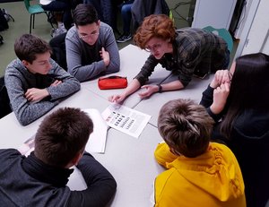 La séance de speedmeeting qui a suivi était l'occasion d'un contact direct avec les chercheurs, qu'ils soient chargés de recherche, ingénieur, doctorants ou post-doctorants. Par table de 4 à 5, les élèves ont pu échanger pendant une dizaine de minutes avec chacune des personnes présentes : ils ont parlé études, métiers, et sciences !