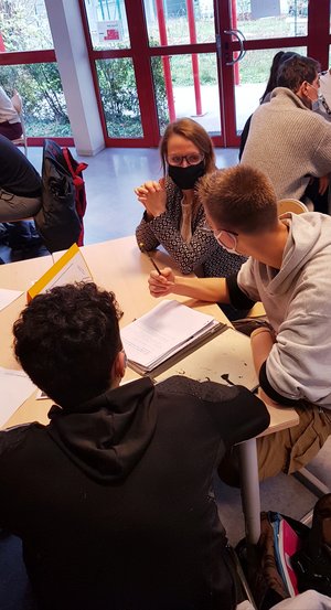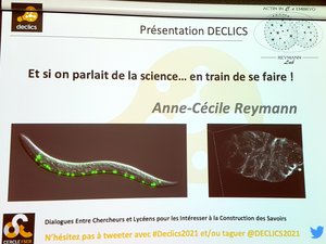 - une conférence interactive a été donnée par Anne-Cécile Reymann, directrice de recherche à l'IGBMC dans le département Biologie du développement et cellules souches : elle a présenté son parcours universitaire et professionnel, ainsi que les enjeux de la recherche scientifique, en sensibilisant les élèves aux fake news et à la nécessité de se forger un esprit critique.