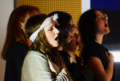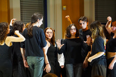 Ils ont expérimenté le registre burlesque pour raconter la Révolution française du point de vue du peuple et à la manière de bateleurs. Ils ont fourni un important travail corporel et découvert comment jouer en étant répartis sur trois estrades différentes.