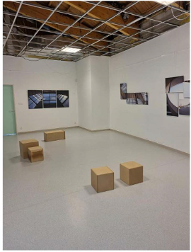 Après une initiation à la photographie d’architecture, les élèves ont appris à utiliser un appareil photo et à maîtriser la perspective. Par petits groupes, ils ont réalisé des clichés valorisant les éléments architecturaux du collège, puis la scénographie de l’exposition a été conçue à partir de leurs travaux.