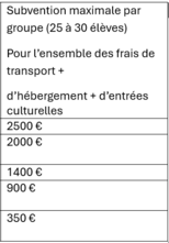 Les établissements scolaires sont encouragés à multiplier les sources de financement pour monter leurs projets (apports de l'établisement, des familles, d'un Eurodistrict, de la communauté de communes, etc...).