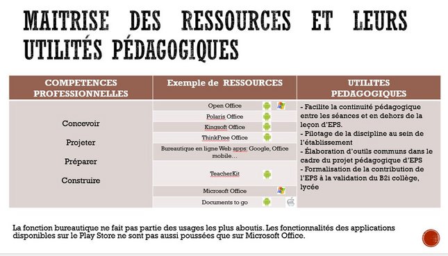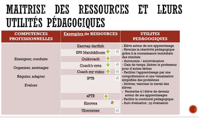 | Développer la connaissance culturelle des Apsa grâce à l’outil numérique, s’informer par rapport à l’usage pédagogique du numérique, pistes d’action au sein de l’équipe pour échapper à la « fracture » numérique et assurer pour chacun un investissement et niveau minimal (organiser l’entraide mais aussi se sentir personnellement concerné) . L’incompétence en matière de numérique ne saurait dédouaner quiconque d’une réflexion au sein de l’équipe pédagogique.