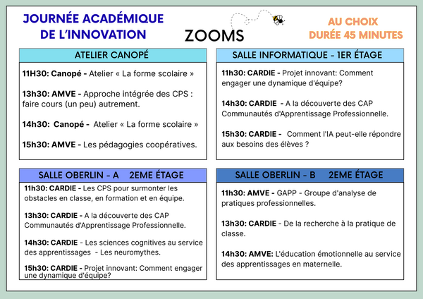 Ce dispositif vise ainsi à favoriser la mutualisation des expériences, le partage d’idées et l’inspiration entre professionnels engagés dans des démarches d’innovation pédagogique.
