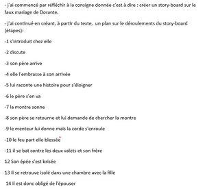 Plan de storyboard écrit par l'élève