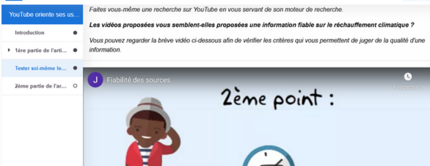 Cette 2ème étape a en réalité été amorcée dès la première séance. En effet, dès le questionnaire précédent, les élèves ont regardé une vidéo qui a plusieurs millions de vue sur YouTube ("Ce qu’ils vous ont caché au sujet du changement climatique") et réfléchi à ce qui en faisait la force de conviction malgré les contre-vérités que son auteur énonçait. Cela nous a amené à réfléchir à la question de la fiabilité des sources d’informations, en particulier sur YouTube.