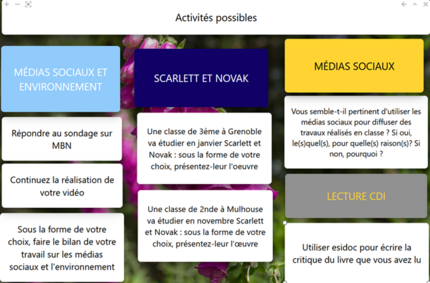 Le parcours sur les médias sociaux et l’environnement a été précédé d’une séquence de cours dans laquelle nous avons étudié la nouvelle d’Alain Damasio, Scarlet et Novak.