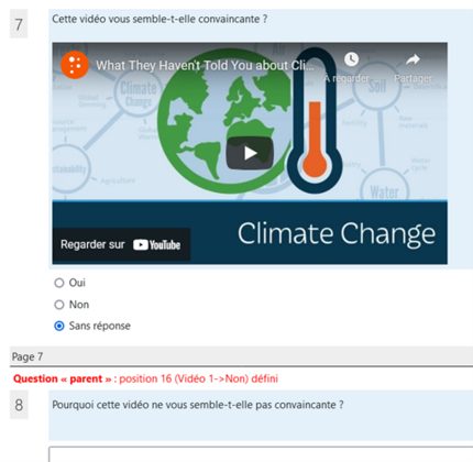 Le but de cette première étape est de lancer les élèves dans l’activité en partant de leur pratique des médias sociaux et de leur sensibilité vis-à-vis de la question climatique en réalisant un sondage dans Mooodle.
