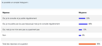 On voit entre autre dans le résultat à ce sondage que les réseaux sociaux utilisés de la façon la plus active par ces lycéens de 2nde sont Snapchat et Instagram et que d’autres réseaux comme Facebook ou Twitter sont quasiment ignorés.