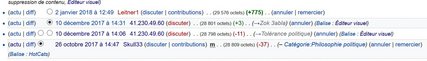 Cependant, l’examen des pages de discussion est le lieu où peuvent s’exprimer des avis contraires. C’est donc l’aspect collaboratif de wikipédia qui fait que les contributeurs de l’encyclopédie sont amenés à échanger entre eux sur leurs points de désaccord.