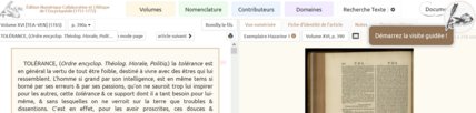 Le même module permet ensuite de guider les élèves dans la lecture de l’article "“Encyclopédie” de Diderot, dans lequel il explique le rôle que jouent les renvois pour renforcer la tolérance des lecteurs.“Je distingue deux sortes de renvois : les uns de choses, & les autres de mots. Les renvois de choses éclaircissent l’objet, indiquent ses liaisons prochaines avec ceux qui le touchent immédiatement, & ses liaisons éloignées avec d’autres qu’on en croiroit isolés ; rappellent les notions communes & les principes analogues ; fortifient les conséquences ; entrelacent la branche au tronc, & donnent au tout cette unité si favorable à l’établissement de la vérité & à la persuasion. Mais quand il le faudra, ils produiront aussi un effet tout contraire ; ils opposeront les notions ; ils feront contraster les principes ; ils attaqueront, ébranleront, renverseront secretement quelques opinions ridicules qu’on n’oseroit insulter ouvertement. Si l’auteur est impartial, ils auront toujours la double fonction de confirmer & de réfuter ; de troubler & de concilier.” Diderot, article “Encyclopédie”
