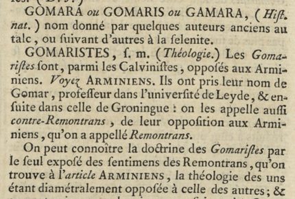 On illustre enfin cette idée, en demandant aux élèves de lire l’article “Gomariste” et de réfléchir à l’usage du premier renvoi proposé. Ce dernier renvoie ainsi à l’article “Arminien” qui permet au lecteur de confronter les deux points de vue opposés sur cette question de théologie.
