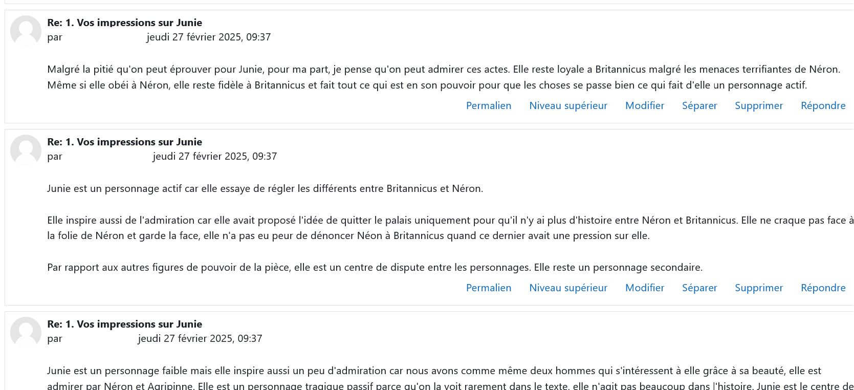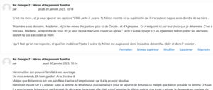 Certaines citations sont mal interprétées, voire sorties de leur contexte. Ainsi, une réplique de Britannicus (« Moi, pour vous obéir… ») est comprise comme un aveu de soumission, alors qu’elle exprime au contraire une tentative de résistance. Ce type de glissement montre que les élèves ont encore besoin d’accompagnement pour lier précisément citation et interprétation.