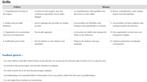 Ce travail de comparaison permet de faire émerger une conscience accrue des critères de qualité d’un commentaire littéraire, tout en posant un regard lucide sur les apports et les limites de l’IA en contexte interprétatif.