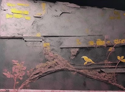Création réalisée par les élèves avec Artbreeder mixant des images de La Voie des Ruines Noires et de la fresque de la Domus aurea ci-dessus