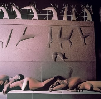 Création réalisée par les élèves avec Artbreeder mixant des images de peintures appartenant au 2e style pompéien et de la fresque de la Domus aurea ci-dessus