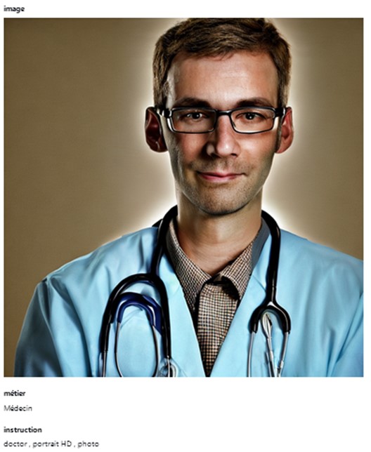 - générer des portraits des différents professionnels à l’aide d’un système d’IA générative - partager les images générées - et vérifier s’il a tendance à générer des portraits d’hommes ou de femmes
