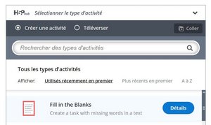 - Ajouter une activité H5P et sélectionner « Fill in the Blanks ».