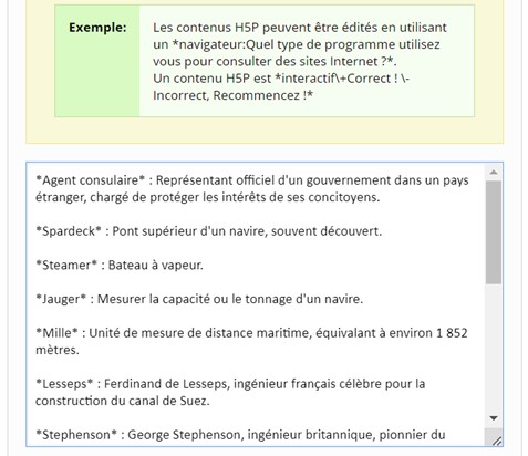 - Demander à l’agent conversationnel d’établir, à partir du texte que vous lui fournissez, un glossaire (mot + définition) des mots qui peuvent être difficiles pour les élèves en prenant soin de mettre le mot à définir entre un seul astérisque : *mot*. Copier l’ensemble du glossaire généré.