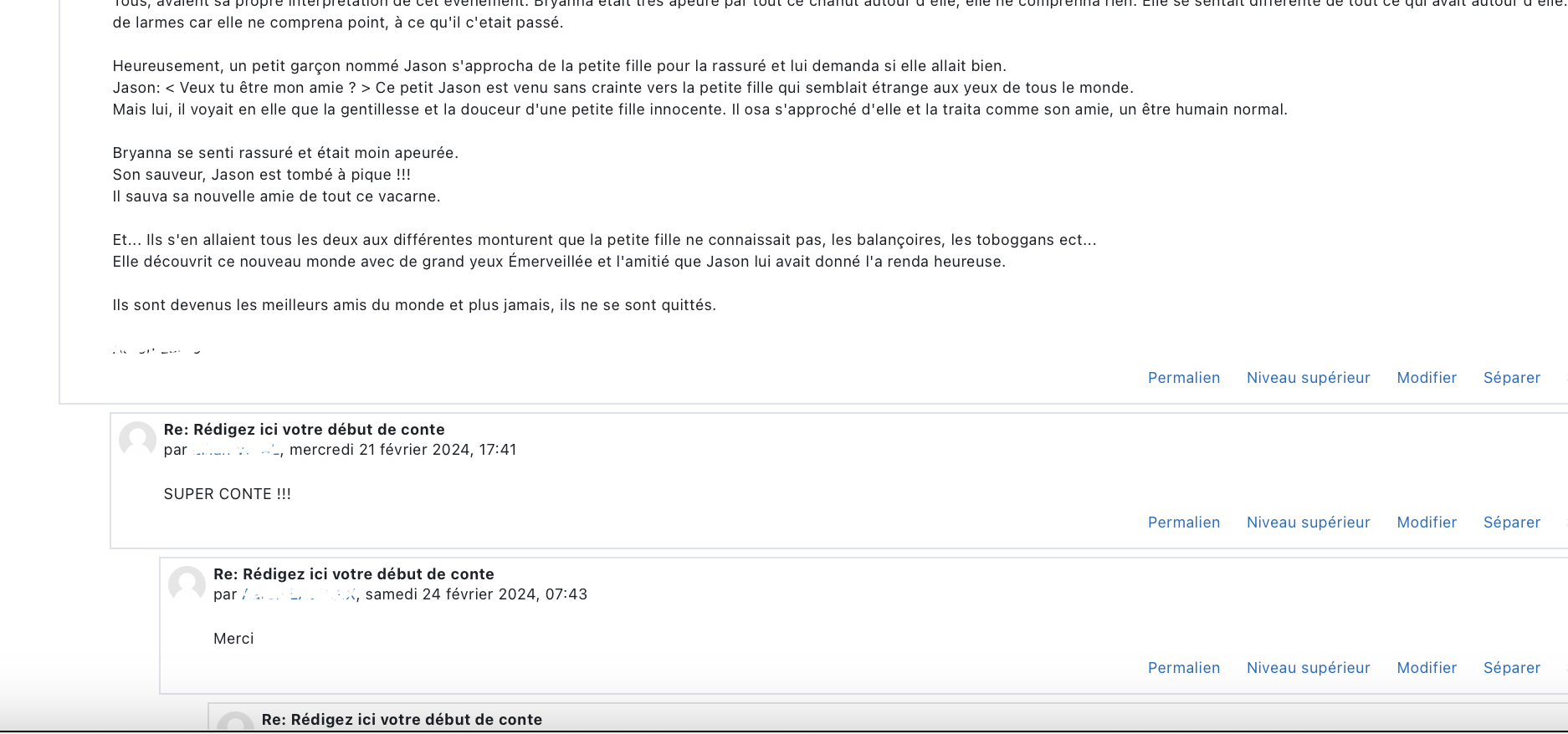 L’intérêt du forum Moodle est que l’enseignant et les élèves peuvent accéder facilement aux textes de leurs camarades pour les relire et les commenter.