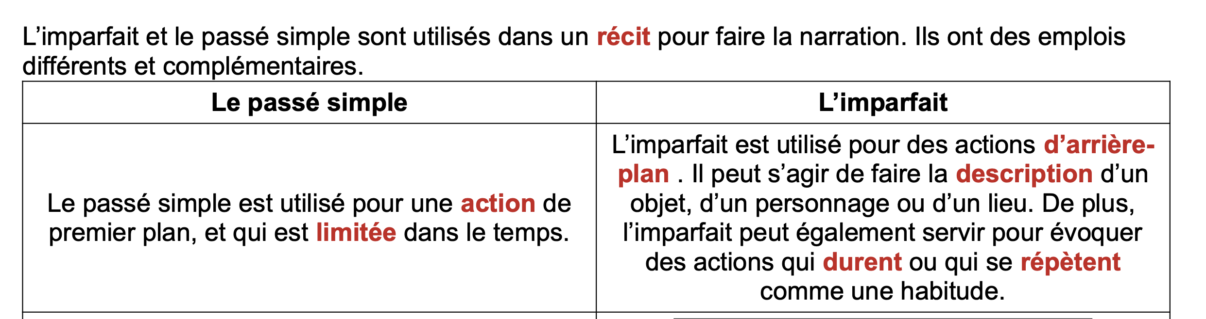 Mon but était que les élèves soient en mesure d’examiner et de justifier à l’oral l'emploi de ces deux temps verbaux.