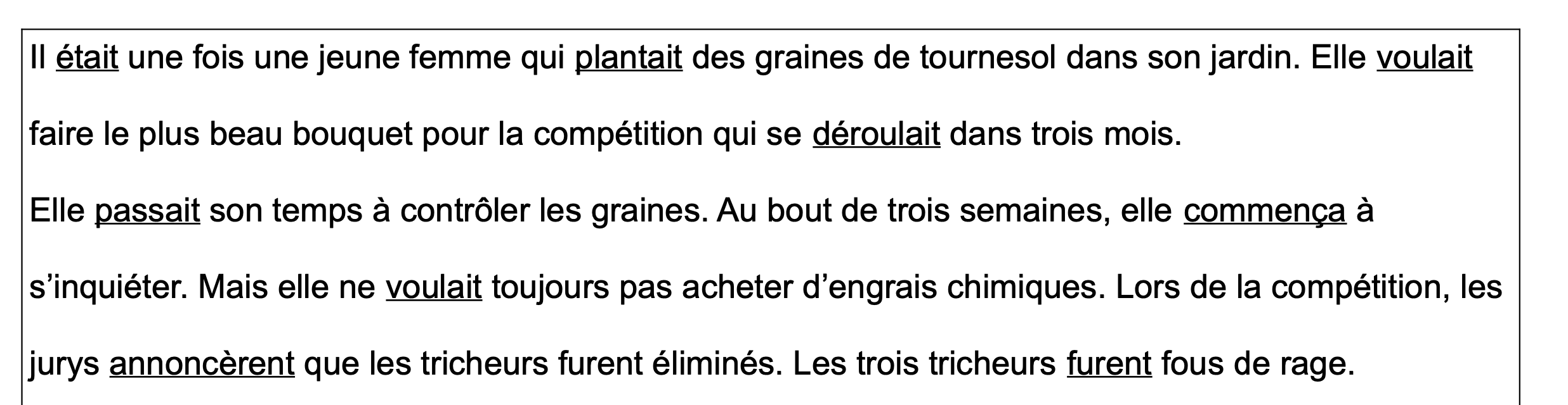 - Tout d'abord, j’ai pensé que cela encouragerait les élèves à réfléchir activement sur l'usage approprié des temps verbaux, notamment entre l'imparfait et le passé simple, favorisant ainsi leur compréhension approfondie de ces deux formes verbales.