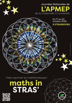 Les prochaines Journées Nationales de l'Association des Professeurs de Mathématiques de l'Enseignement Public (APMEP) se tiendront à Strasbourg du 17 au 20 octobre 2026 (au début des vacances de la Toussaint).