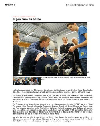 vendredi 10 mai 2019 au lycée Schwilgué de Sélestat