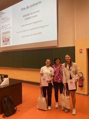 - 2e prix des Olympiades de Géosciences : Magne Honorine et Zanne Emilie du lycée Schumann de Haguenau, pour leur travail sur la glacière de Haguenau.