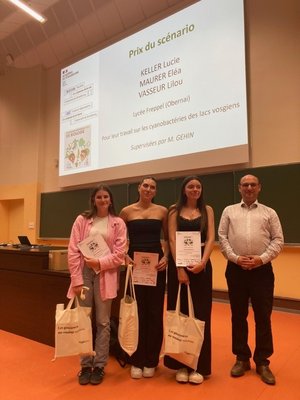 - 2e prix des Olympiades de Biologie : Keller Lucie, Maurer Eléa et Vasseur Lilou du lycée Freppel d’Obernai, pour leur travail sur les cyanobactéries des lacs vosgiens ;