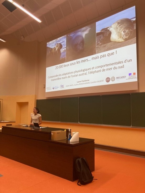 - « 20 000 lieux sous les mers... mais pas que ! Comment étudier et comprendre les adaptations physiologiques et comportementales d’un mammifère marin de l’océan austral, l’éléphant de mer du sud », par Mme Laura Charlanne, doctorante à l’IPHC/DEPE (Département d’Écologie, Écophysiologie et Éthologie)